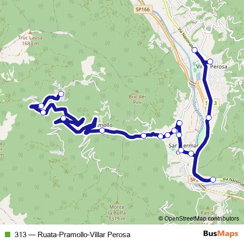 Click here to view the nearest 313 - Ruata-Pramollo-Villar Perosa bus stop.