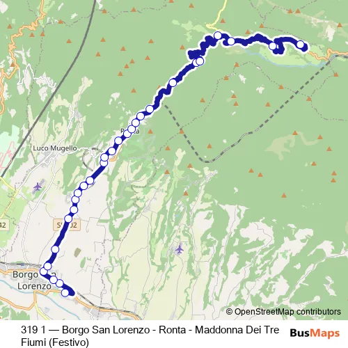 Bus 319 1 - Borgo San Lorenzo - Ronta - Maddonna Dei Tre Fiumi (Festivo) Schedule in Borgo San Lorenzo