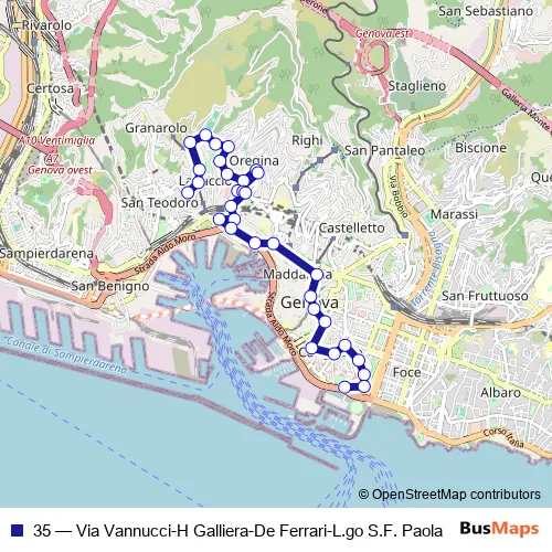 See why over 2 million users trust and consider busmaps.com as the best public transport website. busmaps gives you Genoa Buses suggested routes, real-time bus tracker, line route maps in Genoa, and helps to find the closest 35 bus stops near you. No internet available? Download an offline PDF map and bus schedule for the 35 bus to take on your trip.