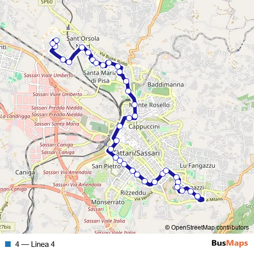 Bus 4 - Linea 4 in Sassari: Stops & Timetable