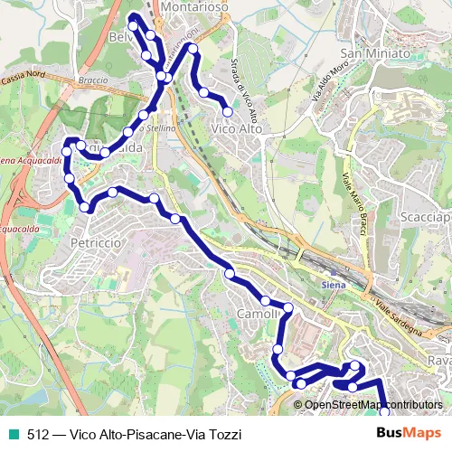 Bus 512 - Vico Alto-Pisacane-Via Tozzi: Full Schedule in Siena
