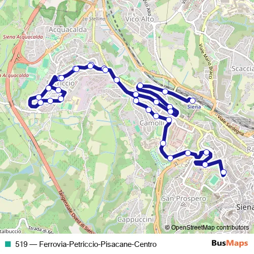 Bus 519 - Ferrovia-Petriccio-Pisacane-Centro Schedule in Siena