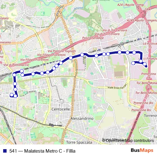 See why over 2 million users trust and consider busmaps.com as the best public transport website. busmaps gives you Rome Buses suggested routes, real-time bus tracker, line route maps in Rome, and helps to find the closest 541 bus stops near you. No internet available? Download an offline PDF map and bus schedule for the 541 bus to take on your trip.
