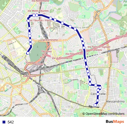See why over 2 million users trust and consider busmaps.com as the best public transport website. busmaps gives you Rome Buses suggested routes, real-time bus tracker, line route maps in Rome, and helps to find the closest 542 bus stops near you. No internet available? Download an offline PDF map and bus schedule for the 542 bus to take on your trip.