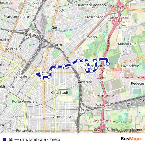 Bus 55 - cim. lambrate - loreto in Milan: Stops & Timetable