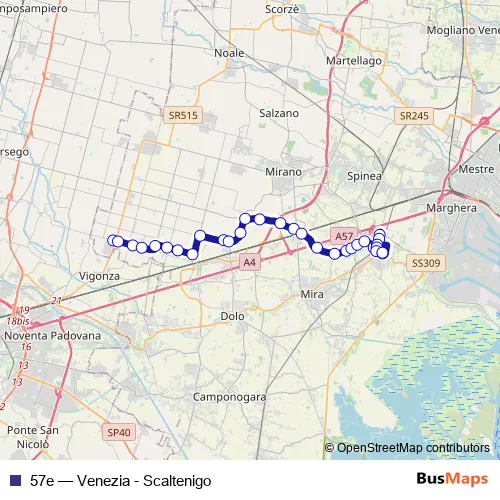 Click here to view the nearest 57e - Venezia - Scaltenigo bus stop.