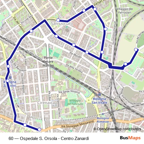 See why over 2 million users trust and consider busmaps.com as the best public transport website. busmaps gives you Bologna Buses suggested routes, real-time bus tracker, line route maps in Bologna, and helps to find the closest 60 bus stops near you. No internet available? Download an offline PDF map and bus schedule for the 60 bus to take on your trip.