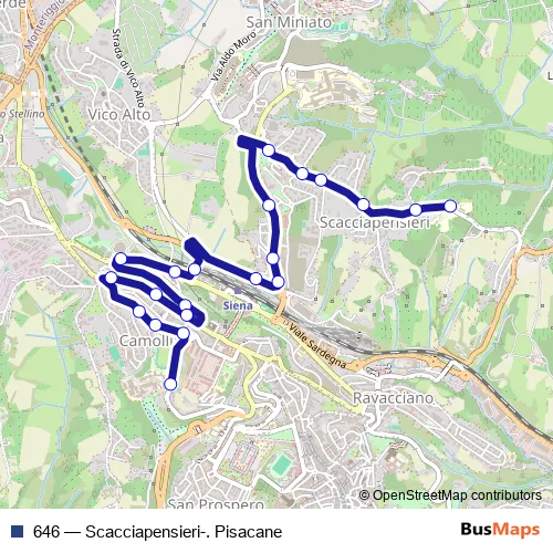 See why over 2 million users trust and consider busmaps.com as the best public transport website. busmaps gives you Siena Buses suggested routes, real-time bus tracker, line route maps in Siena, and helps to find the closest 646 bus stops near you. No internet available? Download an offline PDF map and bus schedule for the 646 bus to take on your trip.
