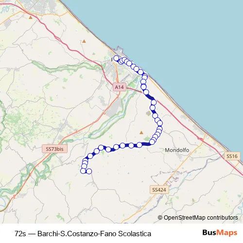 The first stop of the 72s bus route is Pincio and the last stop is Piagge 5 (Palestra). 72s (Barchi-S.Costanzo-Fano Scolastica) is operational during everyday.