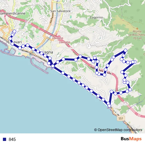 See why over 2 million users trust and consider busmaps.com as the best public transport website. busmaps gives you Lavagna Buses suggested routes, real-time bus tracker, line route maps in Lavagna, and helps to find the closest 845 bus stops near you. No internet available? Download an offline PDF map and bus schedule for the 845 bus to take on your trip.