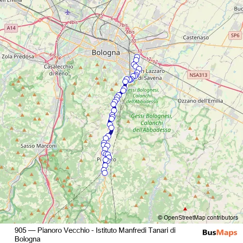 Click here to view the nearest 905 - Pianoro Vecchio - Istituto Manfredi Tanari di Bologna bus stop.