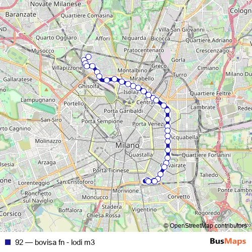 Bus 92 - bovisa fn - lodi m3 in Milan: Stops & Timetable