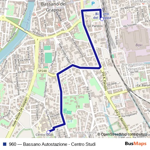 See why over 2 million users trust and consider busmaps.com as the best public transport website. busmaps gives you Bassano del Grappa Buses suggested routes, real-time bus tracker, line route maps in Bassano del Grappa, and helps to find the closest 960 bus stops near you. No internet available? Download an offline PDF map and bus schedule for the 960 bus to take on your trip.