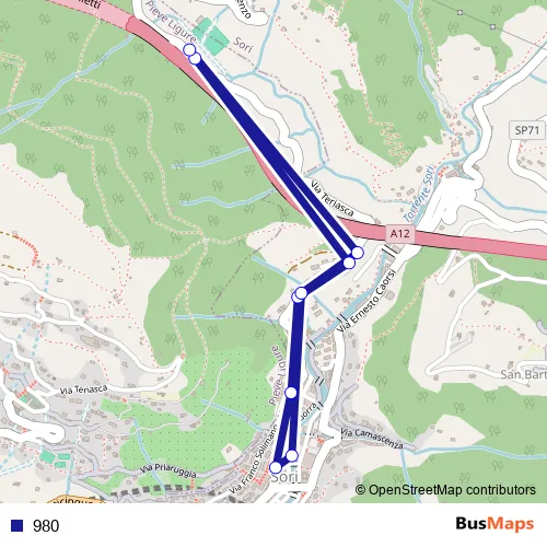 The first stop of the 980 bus route is Via Teriasca F. Vivaio and the last stop is Via Teriasca Vivaio. 980 is operational during on weekends.