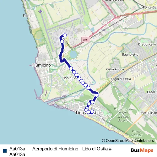 Bus Aa013a - Aeroporto di Fiumicino - Lido di Ostia # Aa013a: Full Schedule in Fiumicino