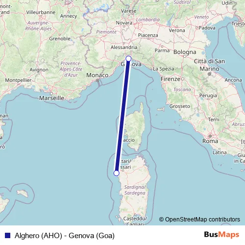 Alghero (AHO) - Genova (Goa) air Route Map