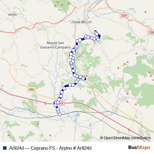 See why over 2 million users trust and consider busmaps.com as the best public transport website. busmaps gives you Collefontana-Fontana Liri Inferiore Buses suggested routes, real-time bus tracker, line route maps in Collefontana-Fontana Liri Inferiore, and helps to find the closest Ar924d bus stops near you. No internet available? Download an offline PDF map and bus schedule for the Ar924d bus to take on your trip.