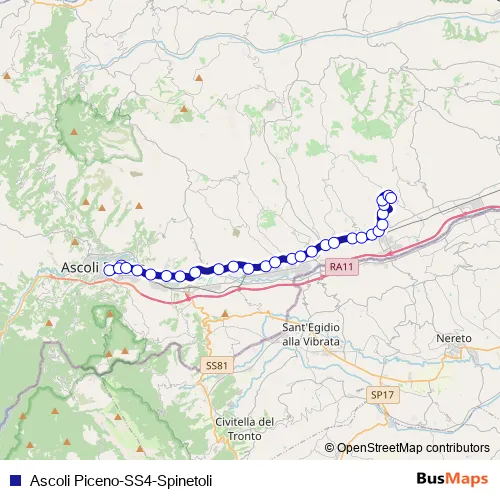 Ascoli Piceno-SS4-Spinetoli bus Route Map