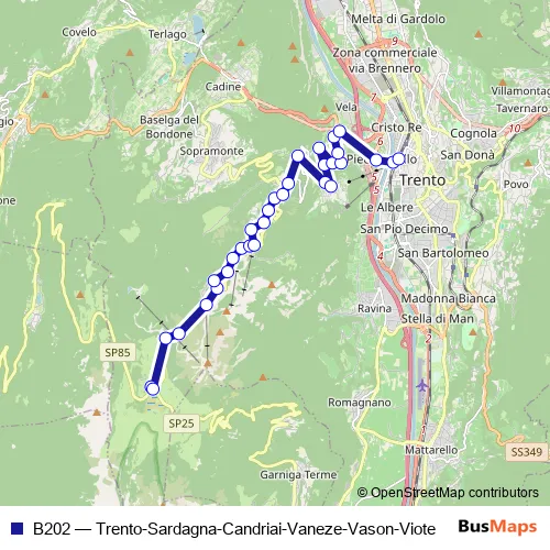 Bus B202 - Trento-Sardagna-Candriai-Vaneze-Vason-Viote: Full Schedule in Trento
