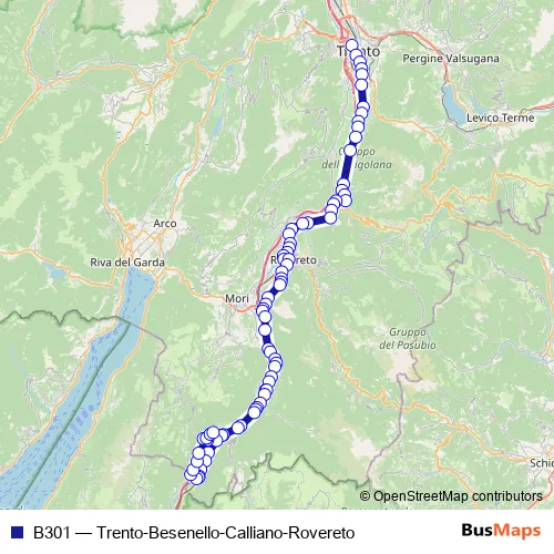 Bus B301 - Trento-Besenello-Calliano-Rovereto Schedule in Trento