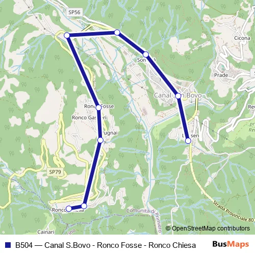 Bus B504 - Canal S.Bovo - Ronco Fosse - Ronco Chiesa in Canal San Bovo: Stops & Timetable