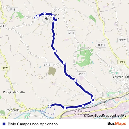 Additional information: Bivio Campolungo-Appignano has 13 stops and the total trip duration