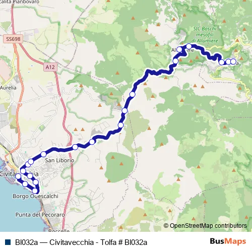 Click here to view the nearest Bl032a - Civitavecchia - Tolfa # Bl032a bus stop.
