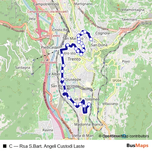 See why over 2 million users trust and consider busmaps.com as the best public transport website. busmaps gives you Trento Buses suggested routes, real-time bus tracker, line route maps in Trento, and helps to find the closest C bus stops near you. No internet available? Download an offline PDF map and bus schedule for the C bus to take on your trip.