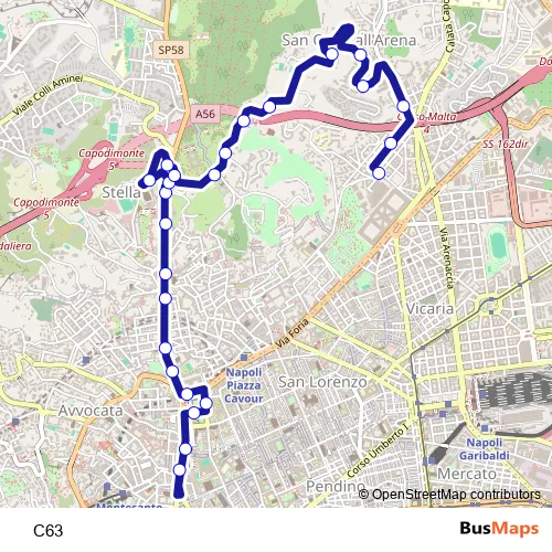 Bus C63 in Naples: Stops & Timetable