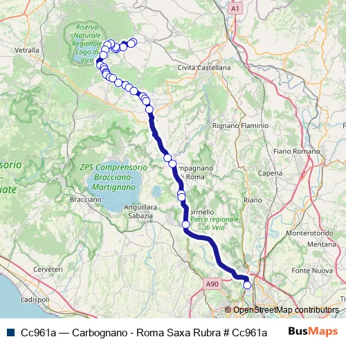 Click here to view the nearest Cc961a - Carbognano - Roma Saxa Rubra # Cc961a bus stop.