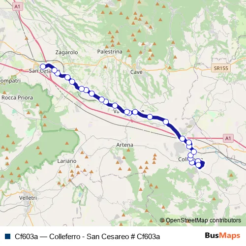 See why over 2 million users trust and consider busmaps.com as the best public transport website. busmaps gives you Colleferro Buses suggested routes, real-time bus tracker, line route maps in Colleferro, and helps to find the closest Cf603a bus stops near you. No internet available? Download an offline PDF map and bus schedule for the Cf603a bus to take on your trip.