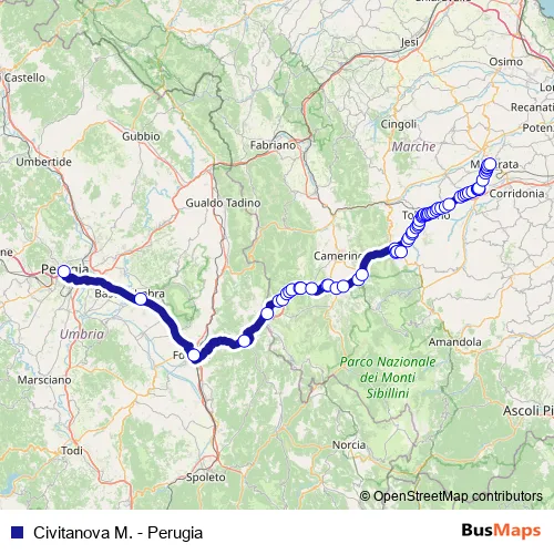 Macerata Terminal. Civitanova M. - Perugia (Civitanova M. - Perugia) is operational during everyday.
