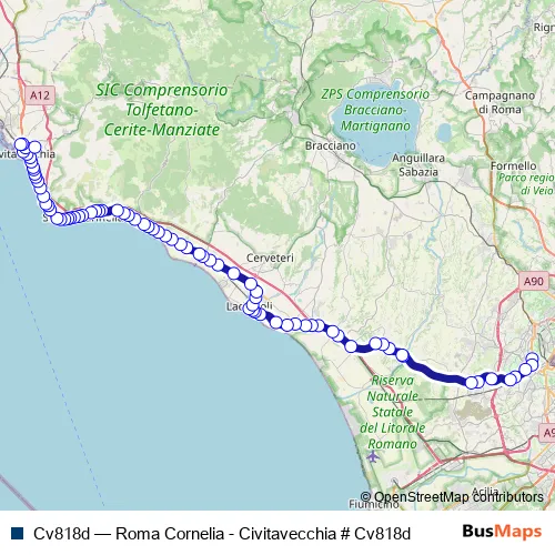 Bus Cv818d - Roma Cornelia - Civitavecchia # Cv818d in Santa Marinella: Stops & Timetable