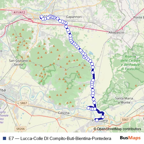 Click here to view the nearest E7 - Lucca-Colle DI Compito-Buti-Bientina-Pontedera bus stop.