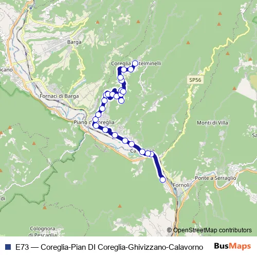 Coreglia Piantaio. E73 (Coreglia-Pian DI Coreglia-Ghivizzano-Calavorno) is operational during everyday.