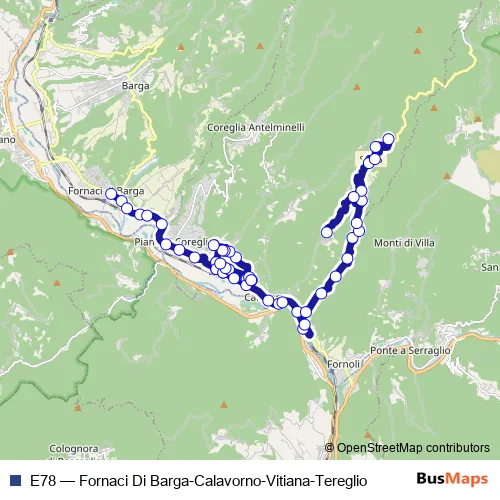Bus E78 - Fornaci Di Barga-Calavorno-Vitiana-Tereglio in Bagni di Lucca: Stops & Timetable