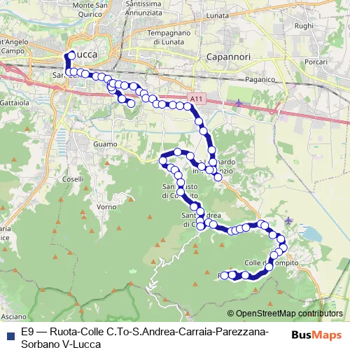 Ruota capolinea. E9 (Ruota-Colle C.To-S.Andrea-Carraia-Parezzana-Sorbano V-Lucca) is operational during on weekdays.