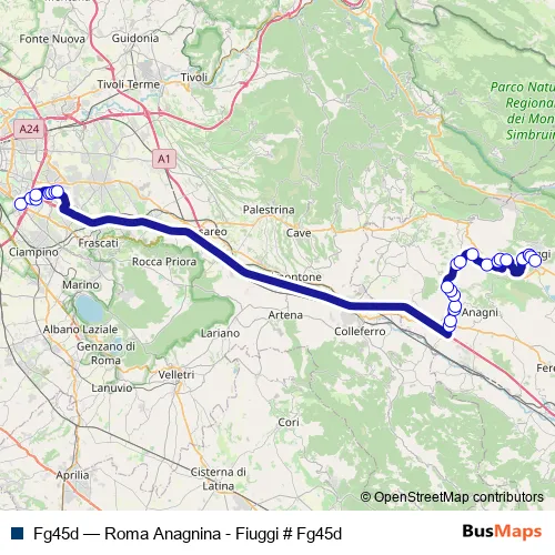 Click here to view the nearest Fg45d - Roma Anagnina - Fiuggi # Fg45d bus stop.