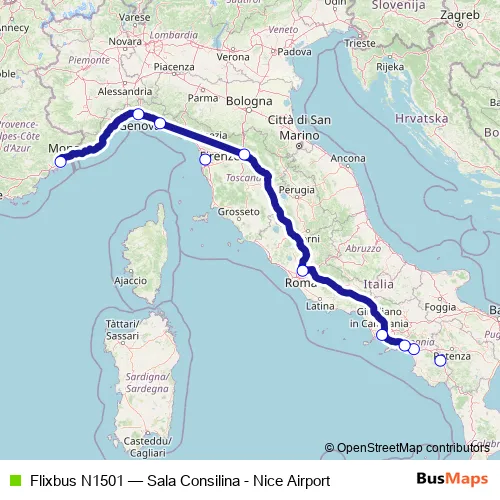 Bus Flixbus N1501 - Sala Consilina - Nice Airport Schedule in Florence