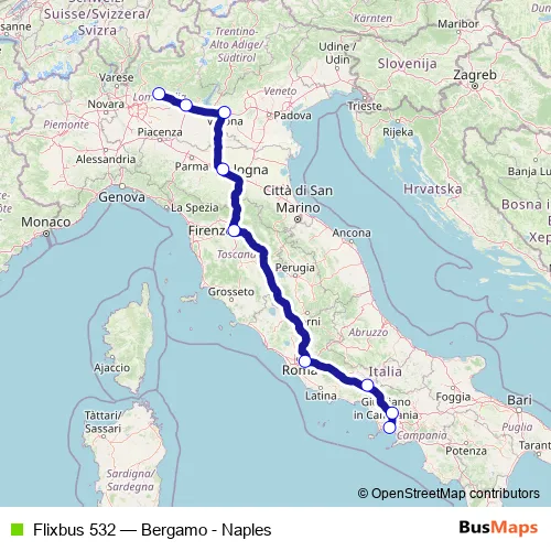 Bus Flixbus 532 - Bergamo - Naples: Full Schedule in Brescia