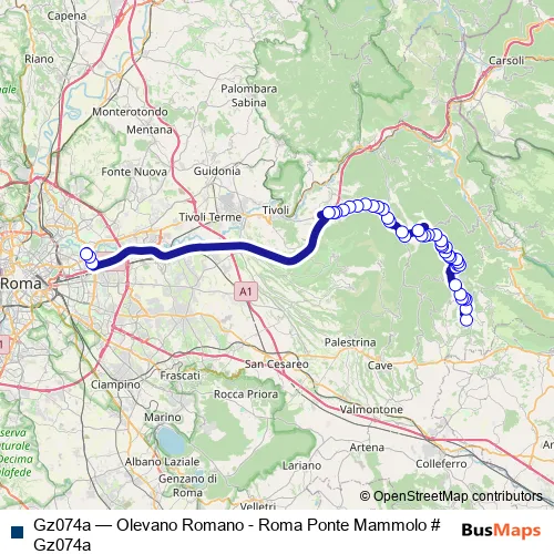 Bus Gz074a - Olevano Romano - Roma Ponte Mammolo # Gz074a Schedule in Rocca Santo Stefano