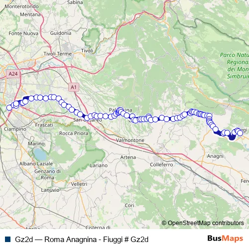 Bus Gz2d - Roma Anagnina - Fiuggi # Gz2d: Full Schedule in Rome