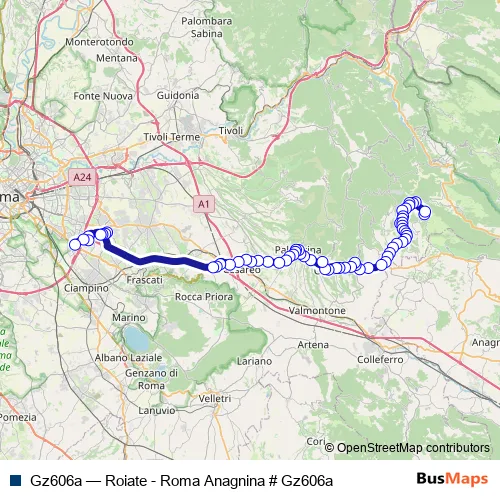 Click here to view the nearest Gz606a - Roiate - Roma Anagnina # Gz606a bus stop.
