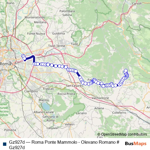 Bus Gz927d - Roma Ponte Mammolo - Olevano Romano # Gz927d: Full Schedule in Olevano Romano