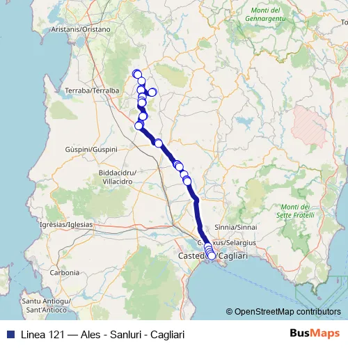 Click here to view the nearest Linea 121 - Ales - Sanluri - Cagliari bus stop.