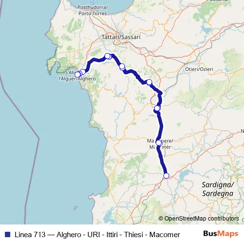 Click here to view the nearest Linea 713 - Alghero - URI - Ittiri - Thiesi - Macomer bus stop.