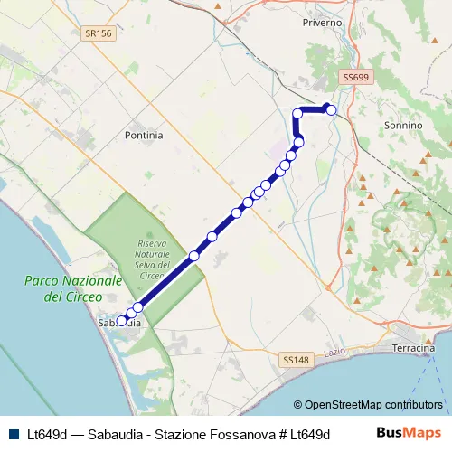 Bus Lt649d - Sabaudia - Stazione Fossanova # Lt649d: Full Schedule in Sonnino