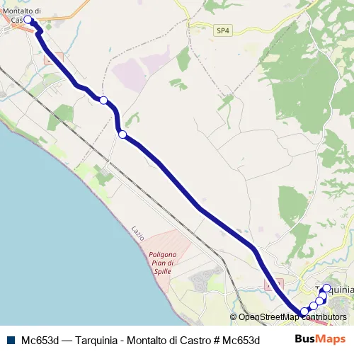 Bus Mc653d - Tarquinia - Montalto di Castro # Mc653d Schedule in Tarquinia