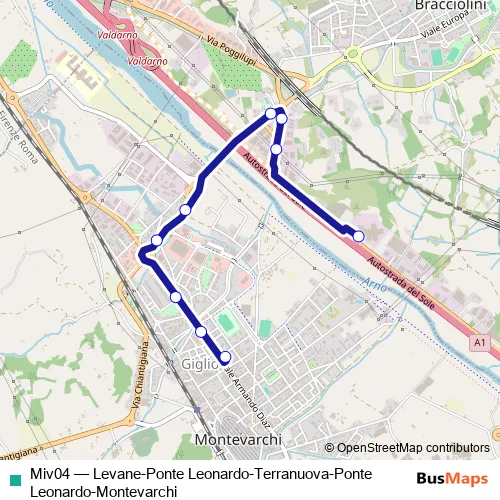 Bus Miv04 - Levane-Ponte Leonardo-Terranuova-Ponte Leonardo-Montevarchi in Montevarchi: Stops & Timetable