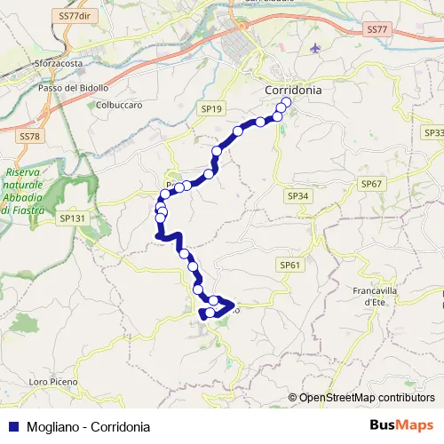 Additional information: Mogliano - Corridonia has 18 stops and the total trip duration for this route is approximately 28 minutes.